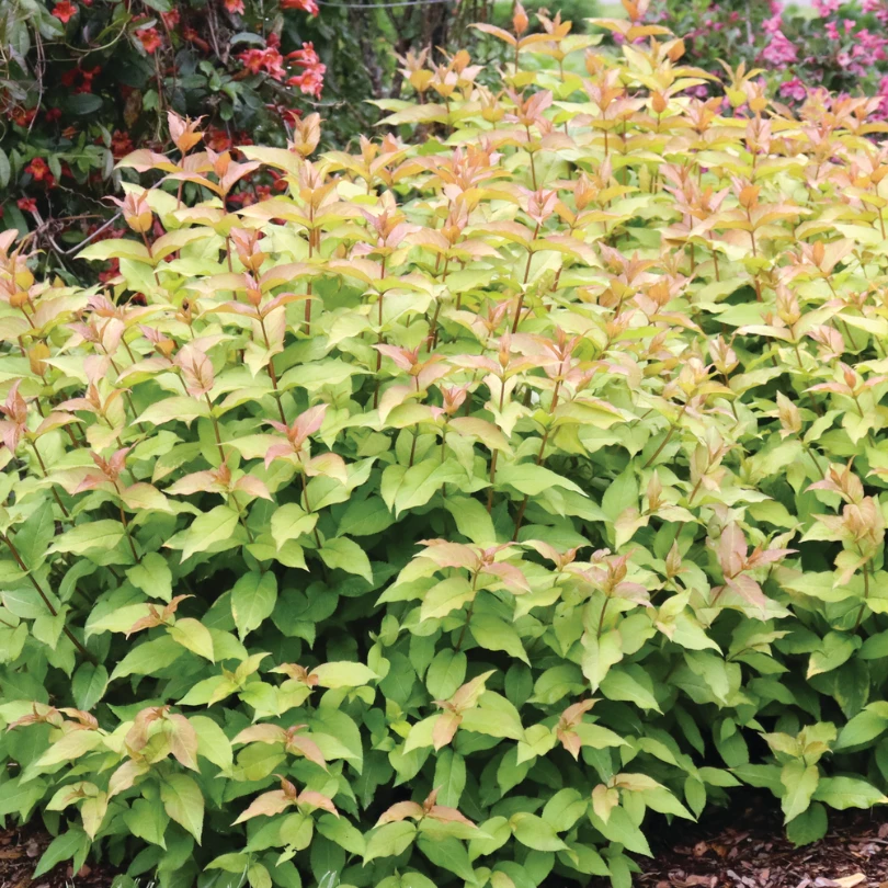 - Coppery new growth spices up the landscape!
