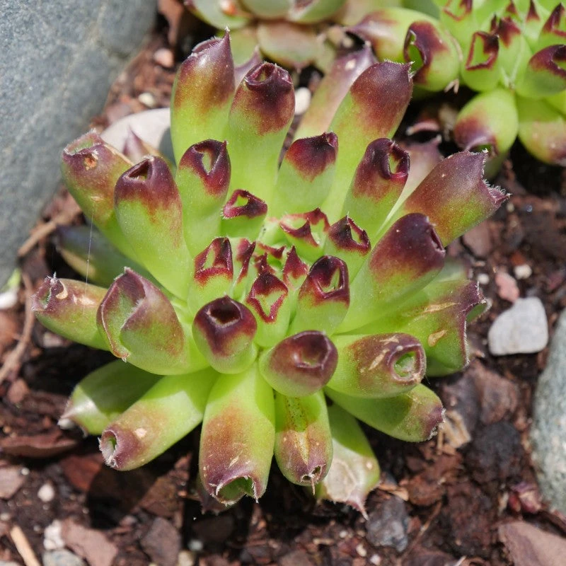 - Green tube shaped foliage tipped in red.